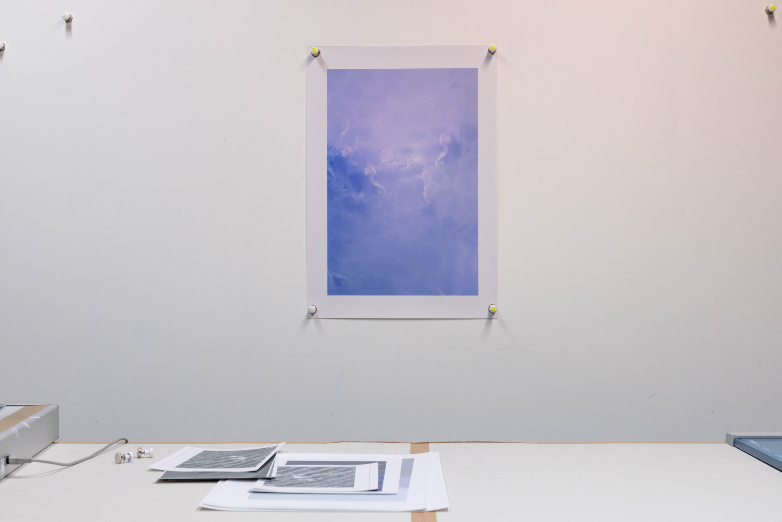 Approaching Haase’s thermal photography through the curatorial methods of Distinct Inside, the work elaborated the concept of radiating meaning rather than signifying — first articulated with Michael Hazell in the exhibition Lieblingsfarbe (Kunstraum Reuter, 2024) — and extended the strategy of the hacked didactic panel — developed together for the group show BOO (P145, 2019). Both concepts draw from Alain Badiou’s notion of inaesthetics, rejecting didacticism in art and the reflexive predicament, favouring instead an affective, latency-driven logic of staging.